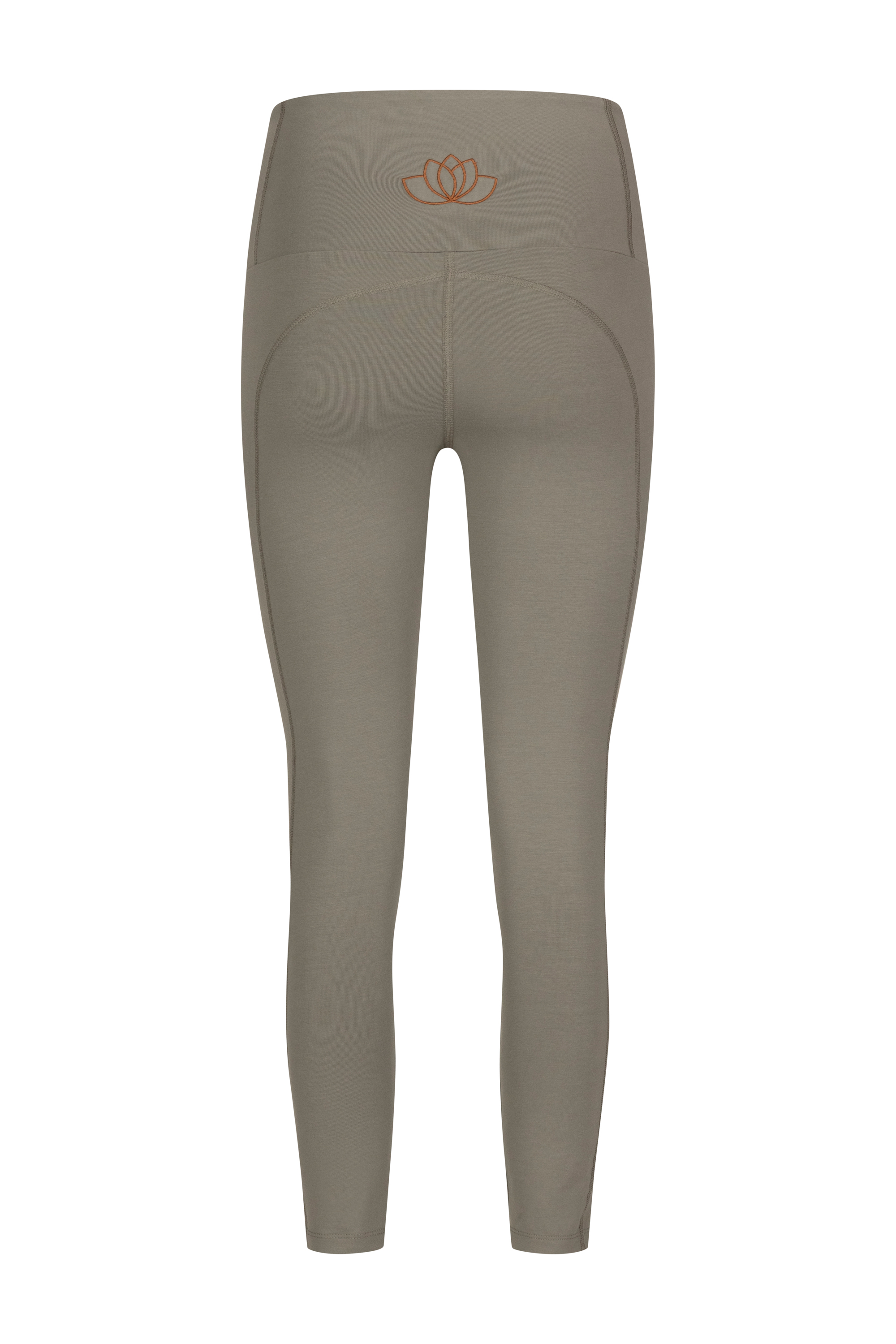 På den høye linningen bak på tightsen er det et vakkert lotusbroderi.