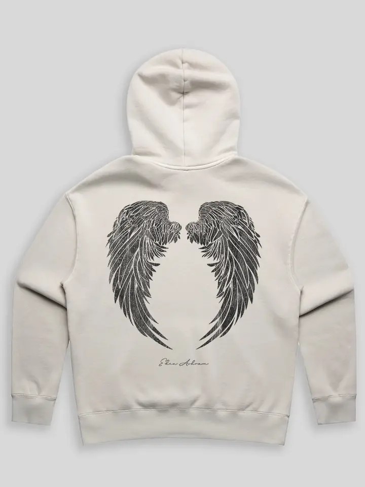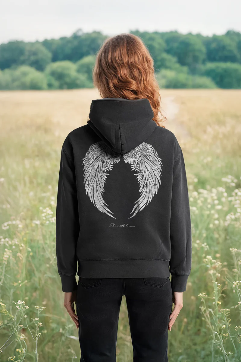 En superkul hettegenser fra Eden Ashram, med et fantastisk englevinge trykk på ryggen.