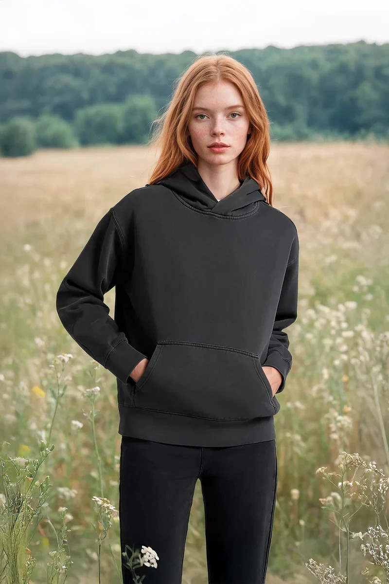 Denne økologiske hettegenser har et moderne, trendy snitt og hettegenser design med et trendy, avslappet boyfriend-stil på et fantastiske falmede, klesfargede stoff som gjør hvert produkt unikt og enestående.