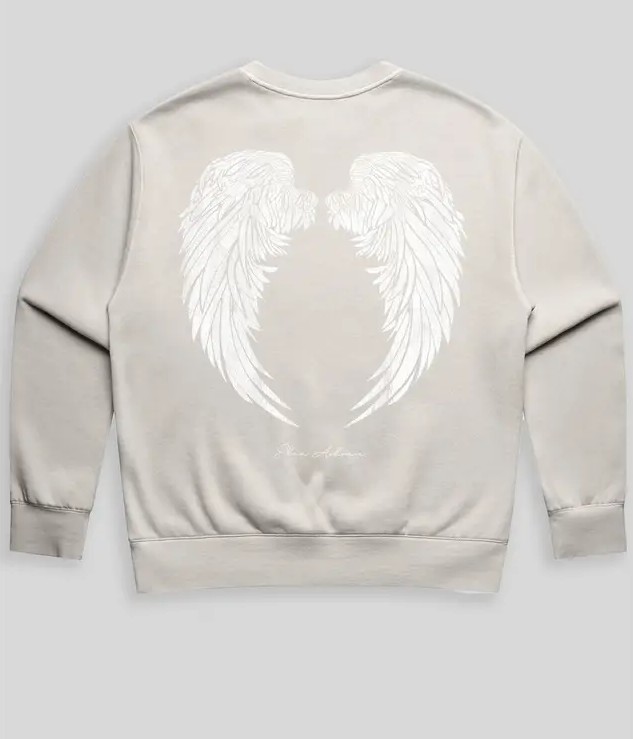 En superkul sweather fra Eden Ashram, med et fantastisk englevinge trykk på ryggen.