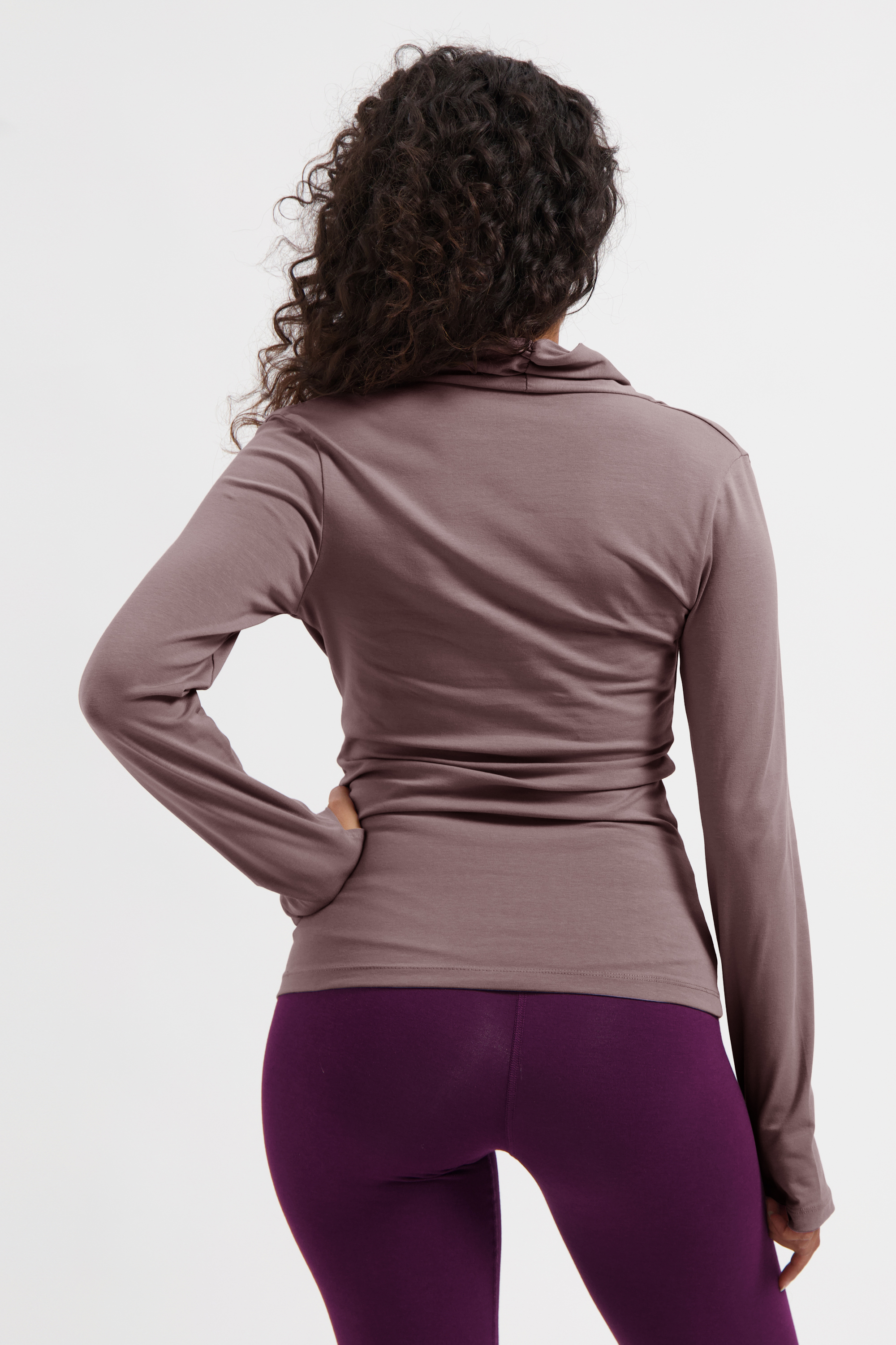 Genseren er laget av pustende, økologisk, bomull med lycra, slik at den beveger seg med deg i hver asana. Med en feminin V-hals og skreddersydd midje, støtter den figuren din, samtidig som den er på linje med hjertechakraet.