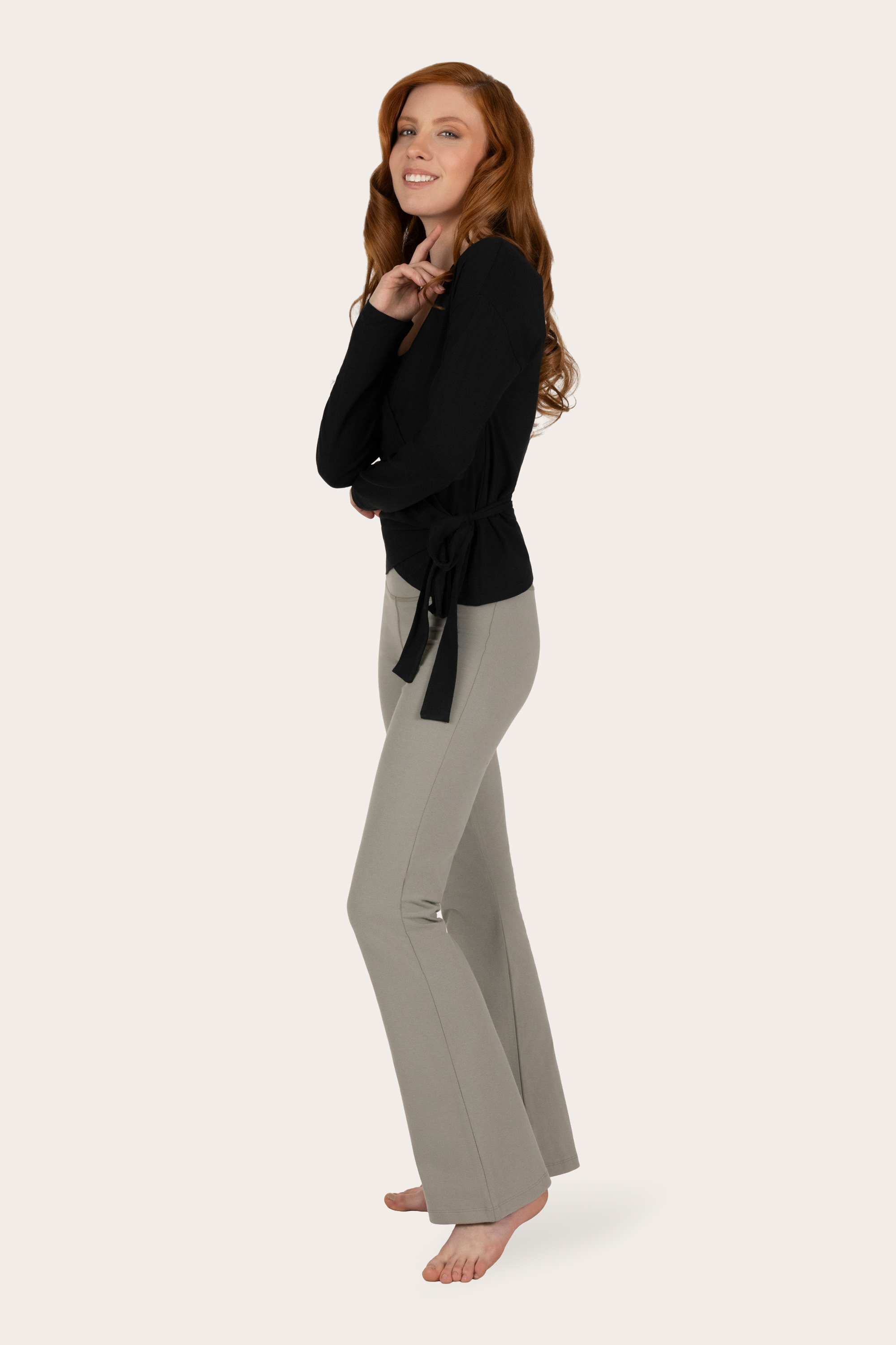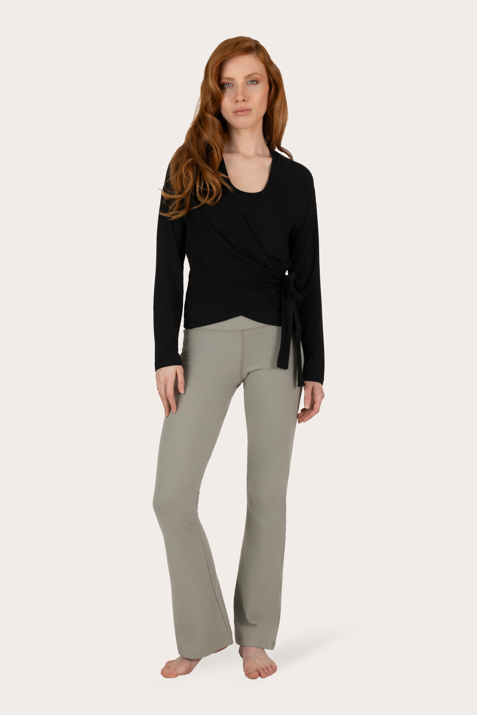 Toppen kommer fra Urban Goddess yogaklær. De bruker kun sertifisert økologisk bomull i sin produksjon. I tillegg er bambusen i denne yogatoppen Oekotex STeP-sertifisert, som er den høyeste lukkede sløyfen miljøvennlige og sikre varianten av bambus.