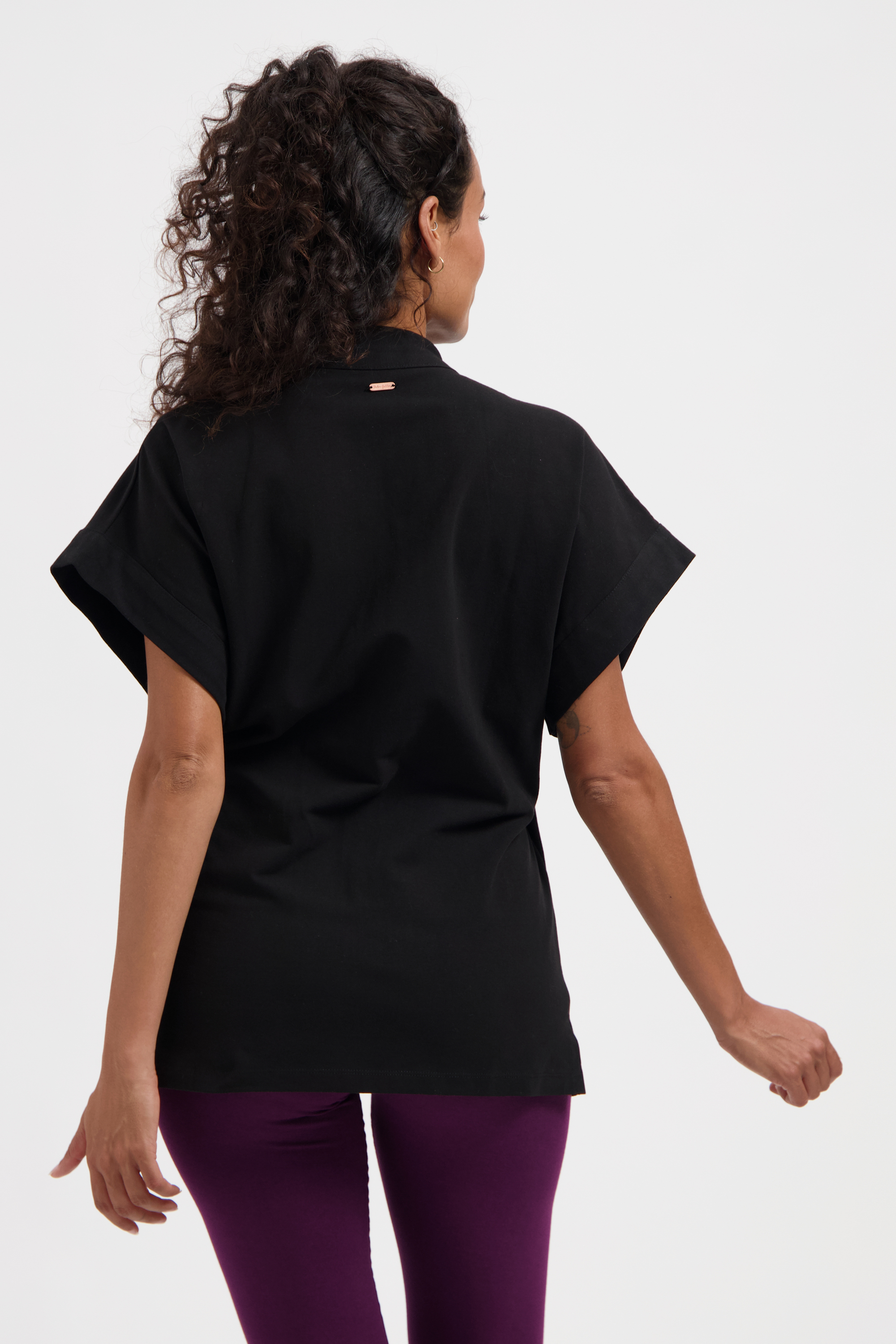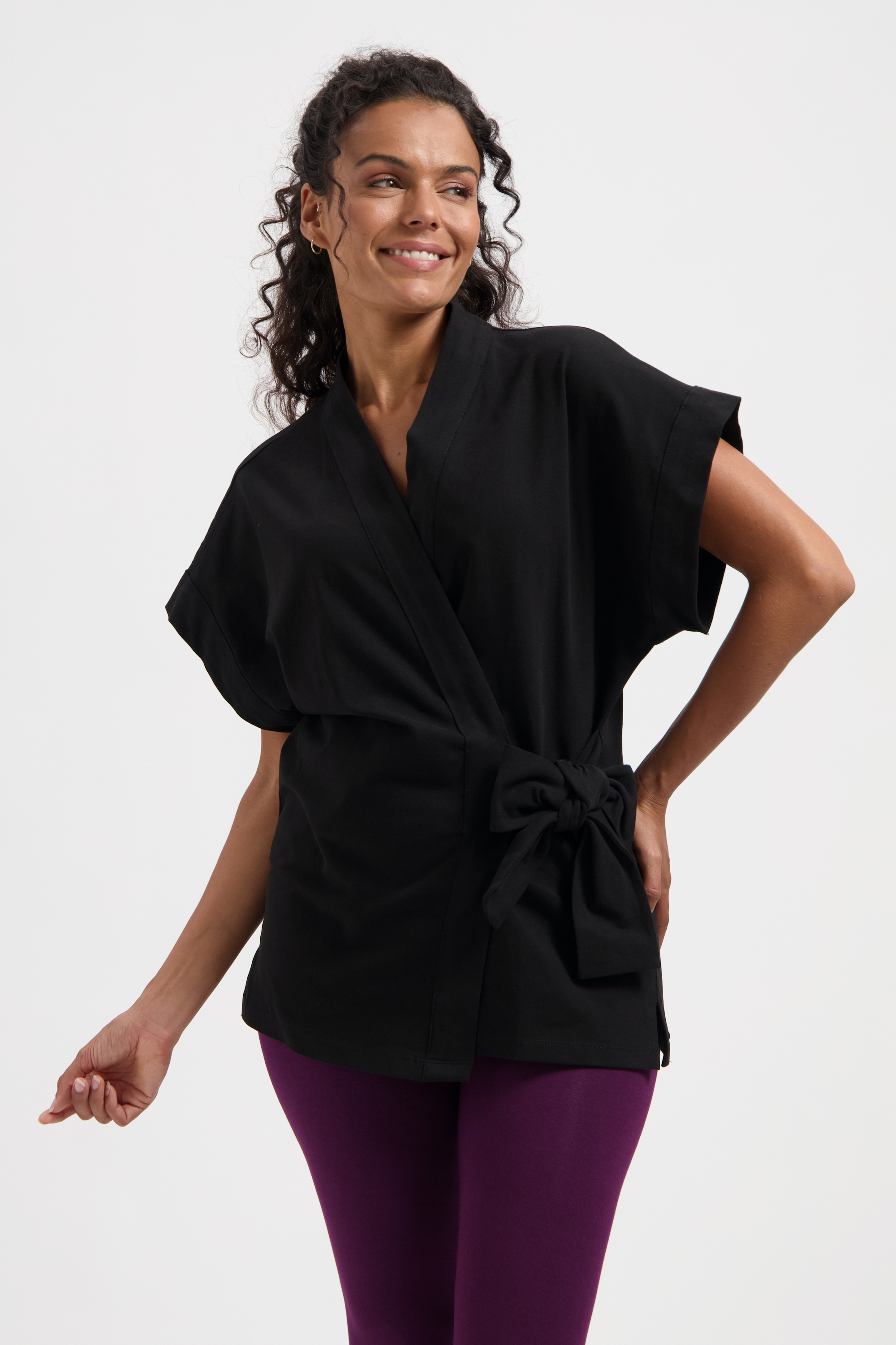 Omslagstopp Yumea er en moderne kimonotopp med store armåpninger og en kryssende passform foran.