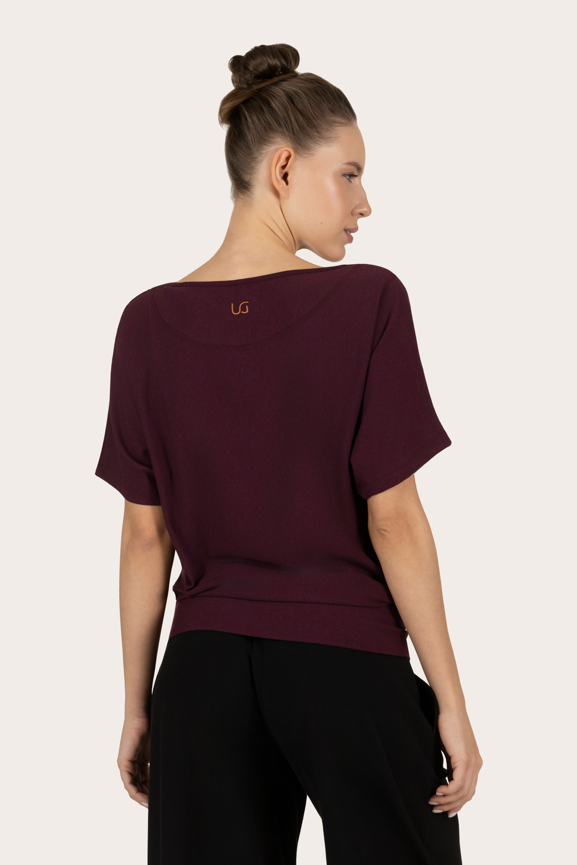 T-skjorten kommer fra Urban Goddess yogaklær. De bruker kun sertifisert økologisk bomull i sin produksjon. I tillegg er bambusen i denne yogatoppen Oekotex STeP-sertifisert, som er den høyeste lukkede sløyfen miljøvennlige og sikre varianten av bambus.