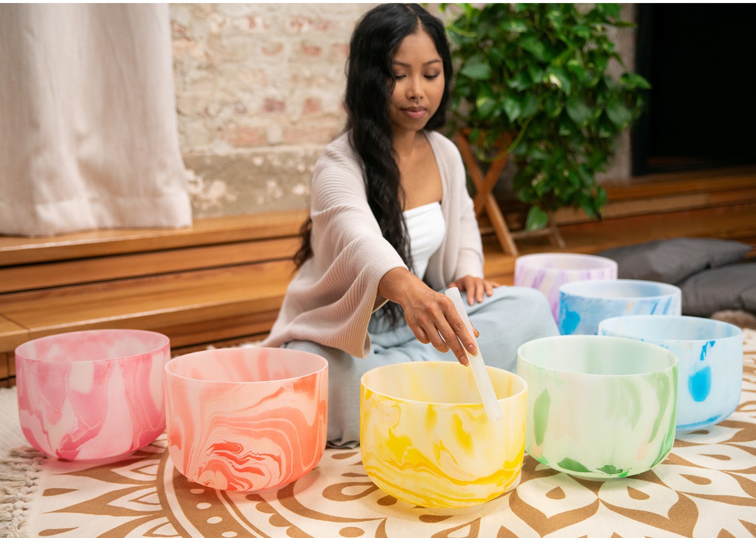 Meinl Sonic Energy Marble Crystal Singing Bowl Chakra Set.