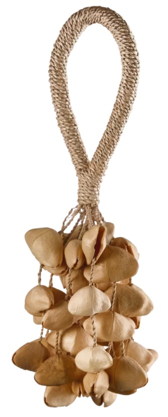Kenarifrø nøtteskall, festet til en håndleddsstropp, skaper et unikt, allsidig instrument.