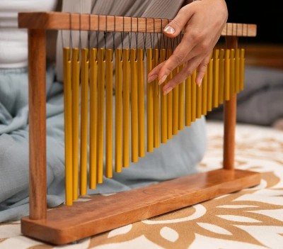 Dette vakre instrumentet er et klokkespill som lager vakre toner, som ligner litt på en harpe, men med mer metallisk klang.